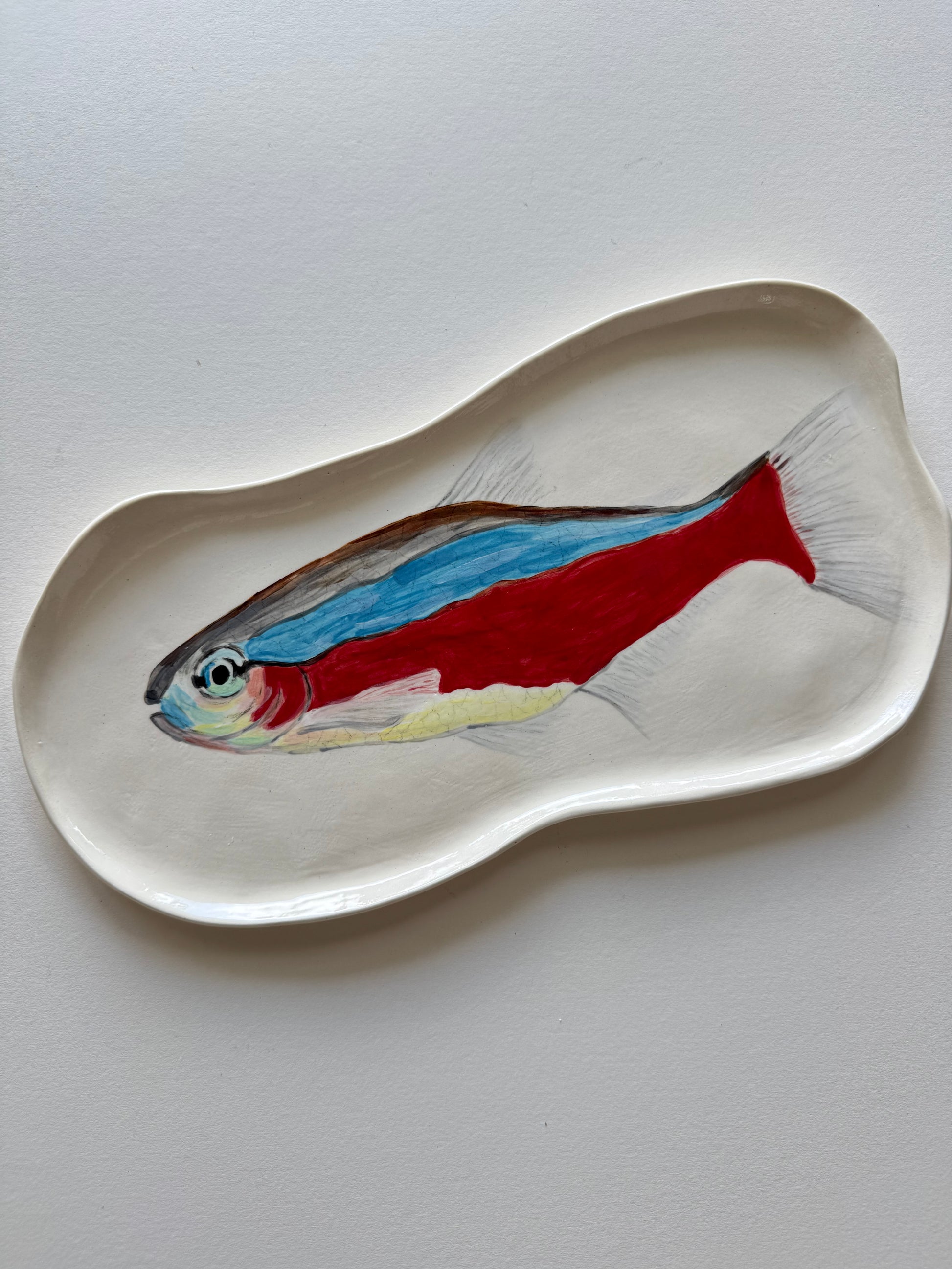 Hand glazed on stoneware clay - either a salmon or a trout?